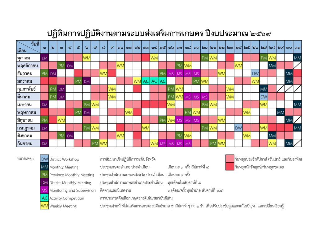 ปฏิทินการปฏิบัติงานตามระบบส่งเสริมการเกษตร ปีงบประมาณ 2569