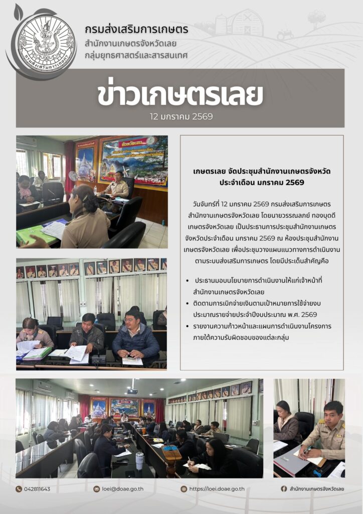 รายงานการประชุมสำนักงานเกษตรจังหวัดประจำเดือน