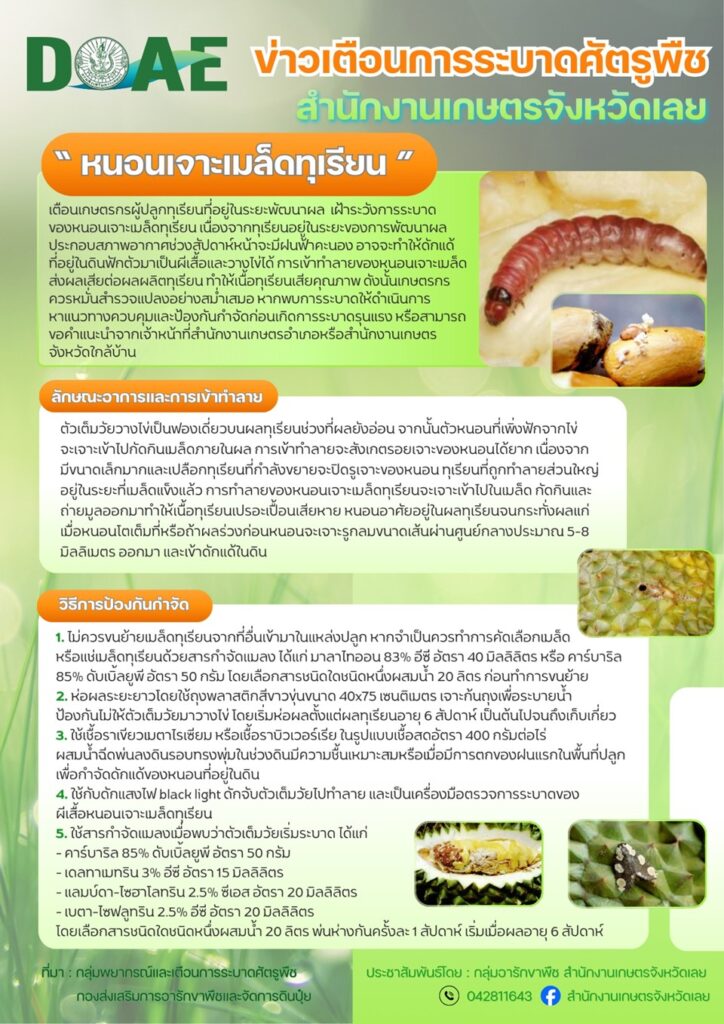 เตือนการระบาด “หนอนเจาะเมล็ดทุเรียน”