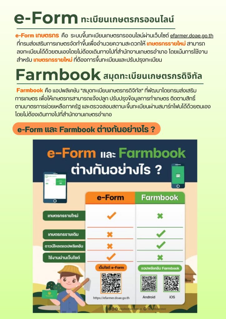 e- Form ทะเบียนเกษตรกรออนไลน์ และ Farmbook สมุดทะเบียนเกษตรกรดิจิทัลBy admin_mueangloei / 10 กุมภาพันธ์ 2026 e-Form คู่มือการใช้ e-Formดาวน์โหลด Farmbook คู่มือการใช้งาน DOAE-Farmbook สำหรับเกษตรกรดาวน์โหลด