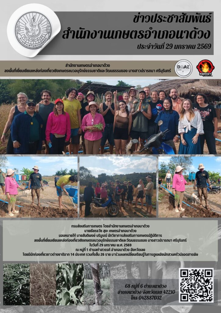 สำนักงานเกษตรอำเภอนาด้วง ลงพื้นที่เยี่ยมเยียนแหล่งท่องเที่ยวเชิงเกษตรแนวอนุรักษ์ธรรมชาติและวัฒนธรรมของ นางสาวปรารถนา ศรีบุรินทร์