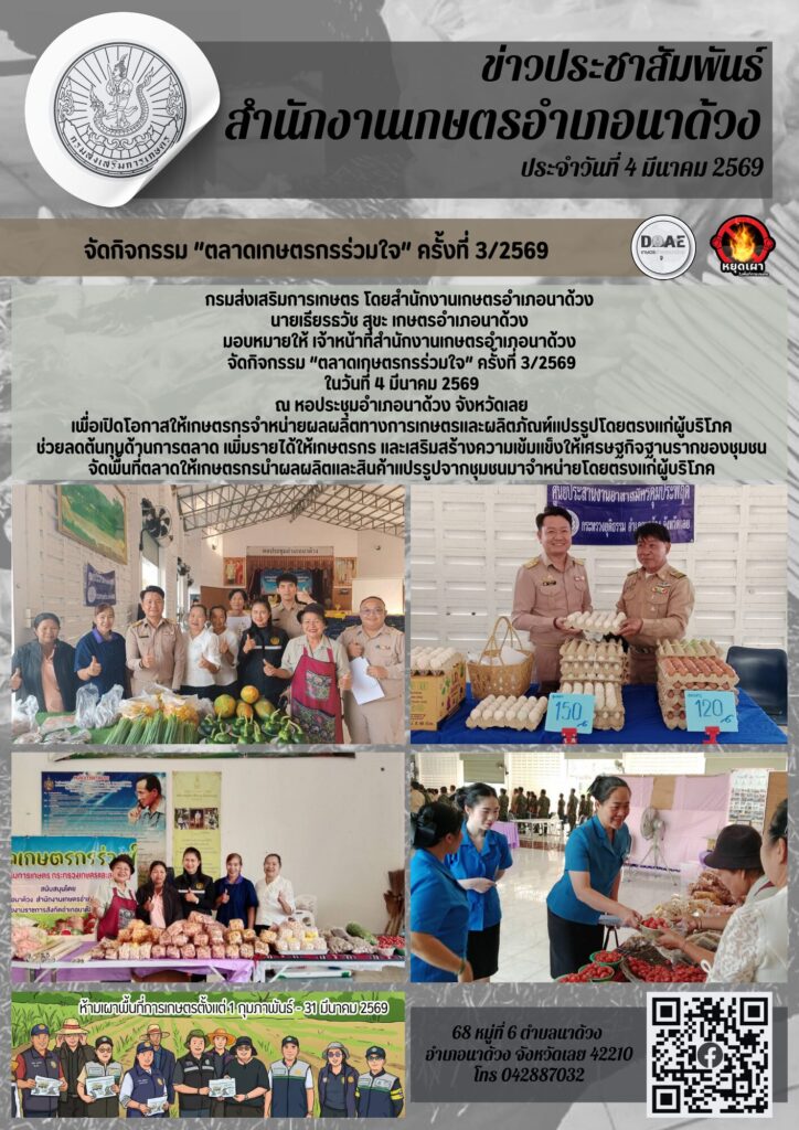 จัดกิจกรรม “ตลาดเกษตรกรร่วมใจ” ครั้งที่ 3/2569
