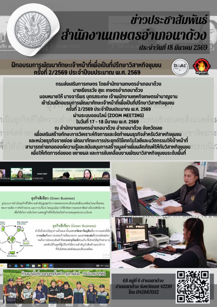 📋เข้าร่วมฝึกอบรมการพัฒนาทักษะเจ้าหน้าที่เพื่อเป็นที่ปรึกษาวิสาหกิจชุมชน ครั้งที่ 2/2569 ประจำปีงบประมาณ พ.ศ. 2569