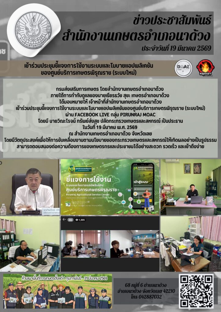 เข้าร่วมประชุมชี้แจงการใช้งานระบบและโมบายแอปพลิเคชันของศูนย์บริการเกษตรพิรุณราช (ระบบใหม่)