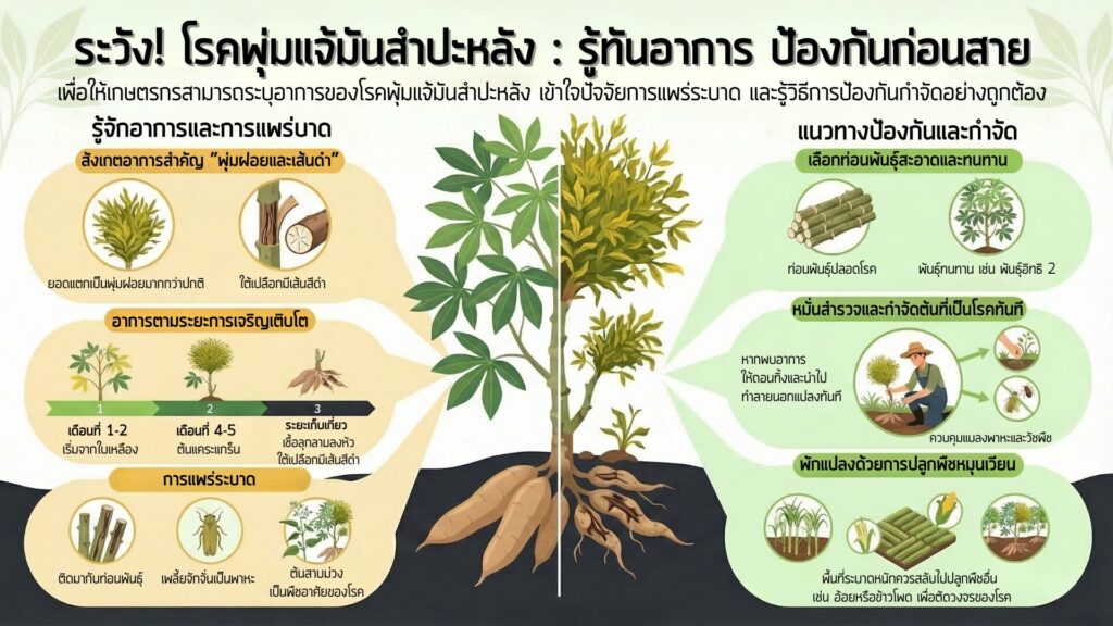 ประกาศเตือนภัยเกษตรกร: เฝ้าระวัง “โรคพุ่มแจ้มันสำปะหลัง” ในเขตพื้นที่อำเภอนาด้วง