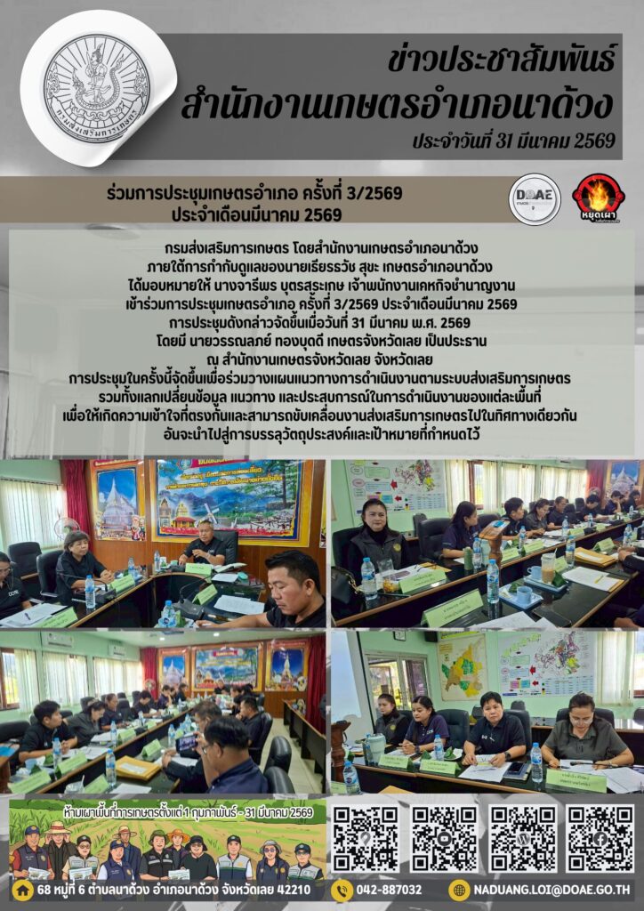 เข้าร่วมการประชุมเกษตรอำเภอ ครั้งที่ 3/2569 ประจำเดือนมีนาคม 2569