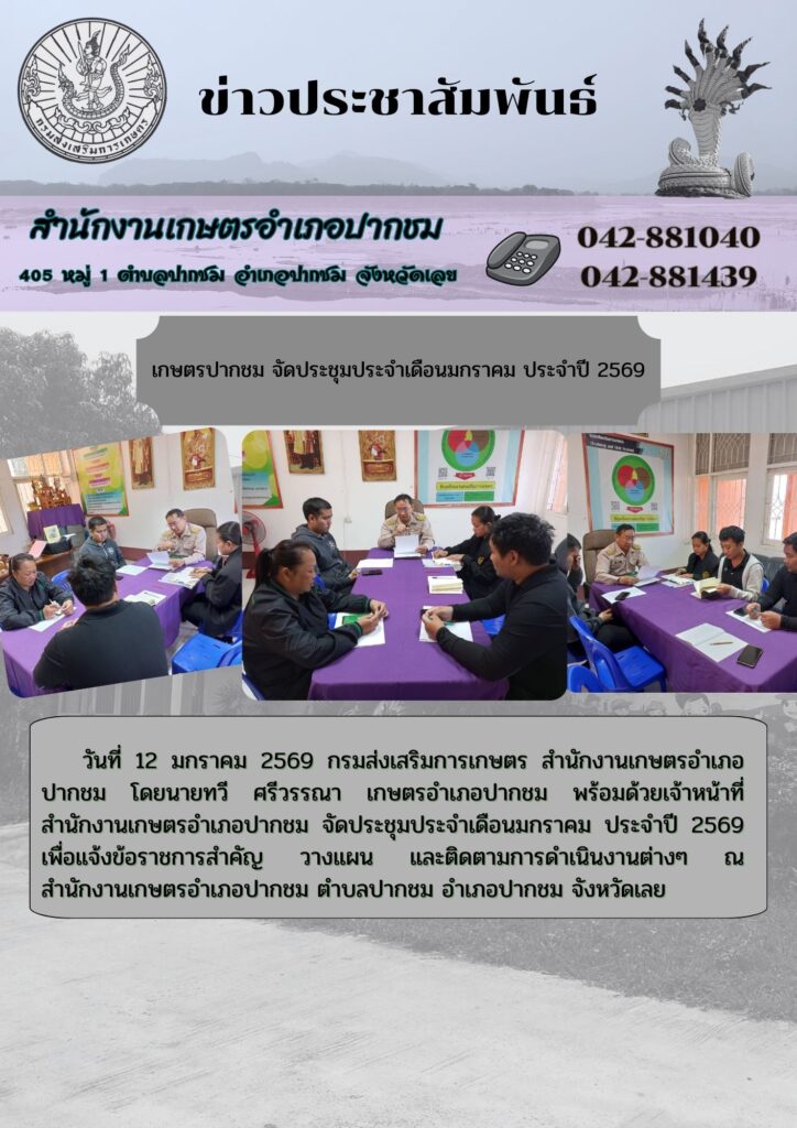 เกษตรปากชม ร่วมประชุมคณะทำงานติดตามสถานการณ์และแก้ไขปัญหาไฟป่า หมอกควันและฝุ่นละอองขนาดเล็ก (PM 2.5) จังหวัดเลย (War Room) ครั้งที่ 2/2569