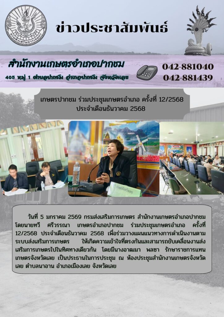 เกษตรปากชม ร่วมประชุมเกษตรอำเภอ ครั้งที่ 12/2568 ประจำเดือนธันวาคม 2568By admin_pakchom / 13 กุมภาพันธ์ 2026