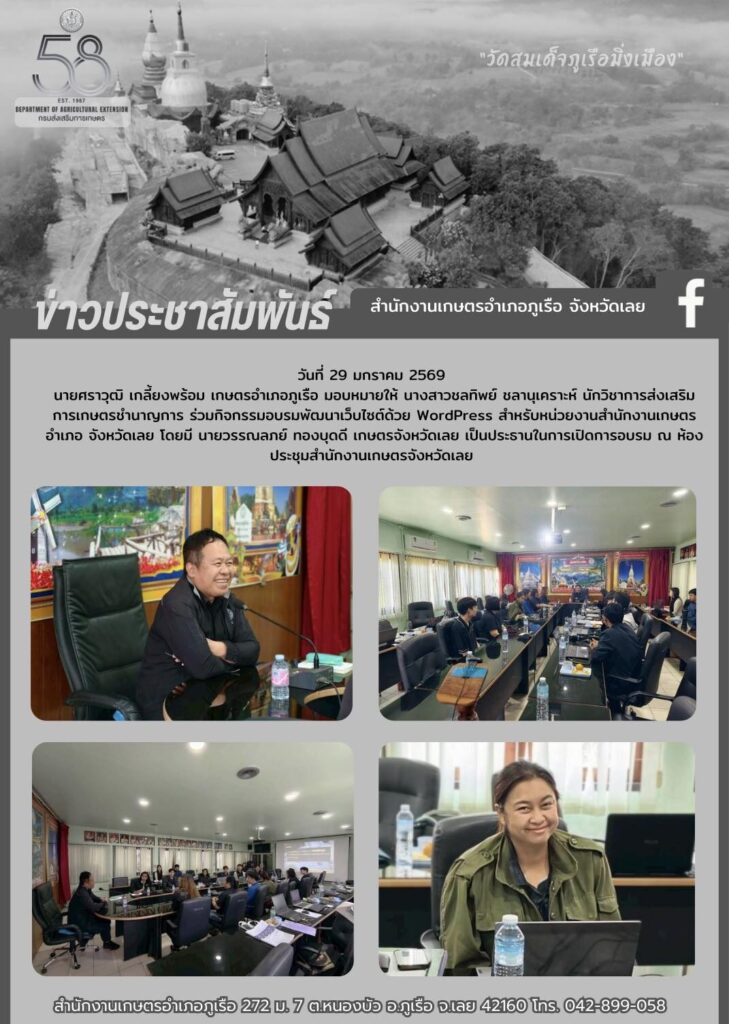 ร่วมกิจกรรมอบรมพัฒนาเว็บไซต์ด้วย WordPress สำหรับหน่วยงานสำนักงานเกษตรอำเภอBy admin_phuruea / 30 มกราคม 2026
