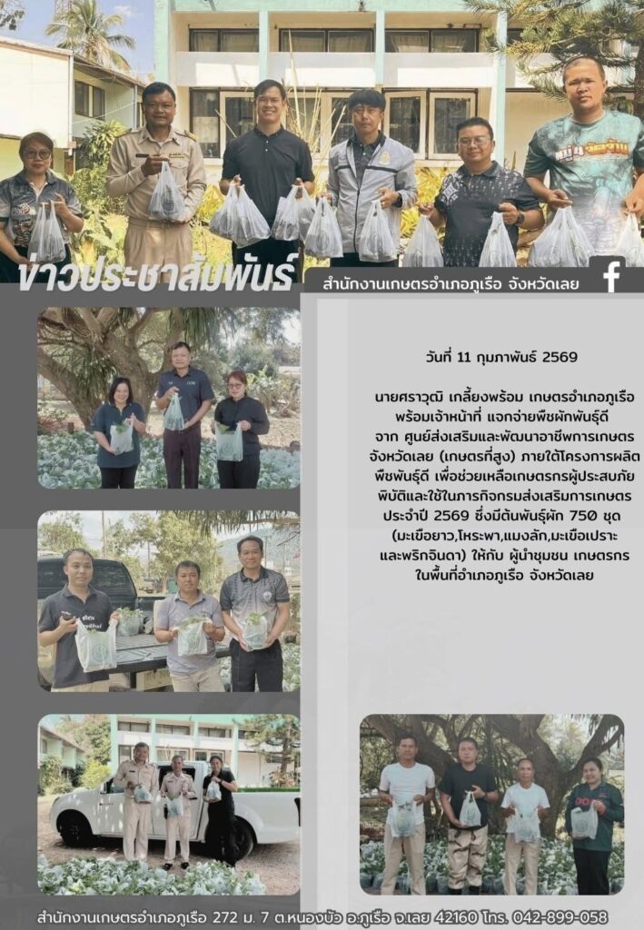 แจกจ่ายพืชผักพันธุ์ดี จาก ศูนย์ส่งเสริมและพัฒนาอาชีพการเกษตรจังหวัดเลย (เกษตรที่สูง)By admin_phuruea / 13 กุมภาพันธ์ 2026