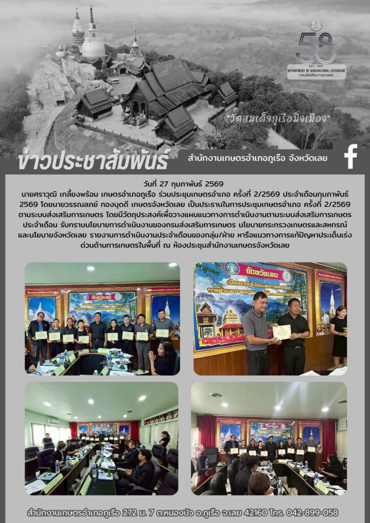 จัดการประชุมคณะทำงานคณะทำงานโครงการขับเคลื่อนการเกษตรระดับหมู่บ้าน สู่การผลิตสินค้าเกษตรมูลค่าสูงระดับหมู่บ้าน ครั้งที่ 1 / 2569