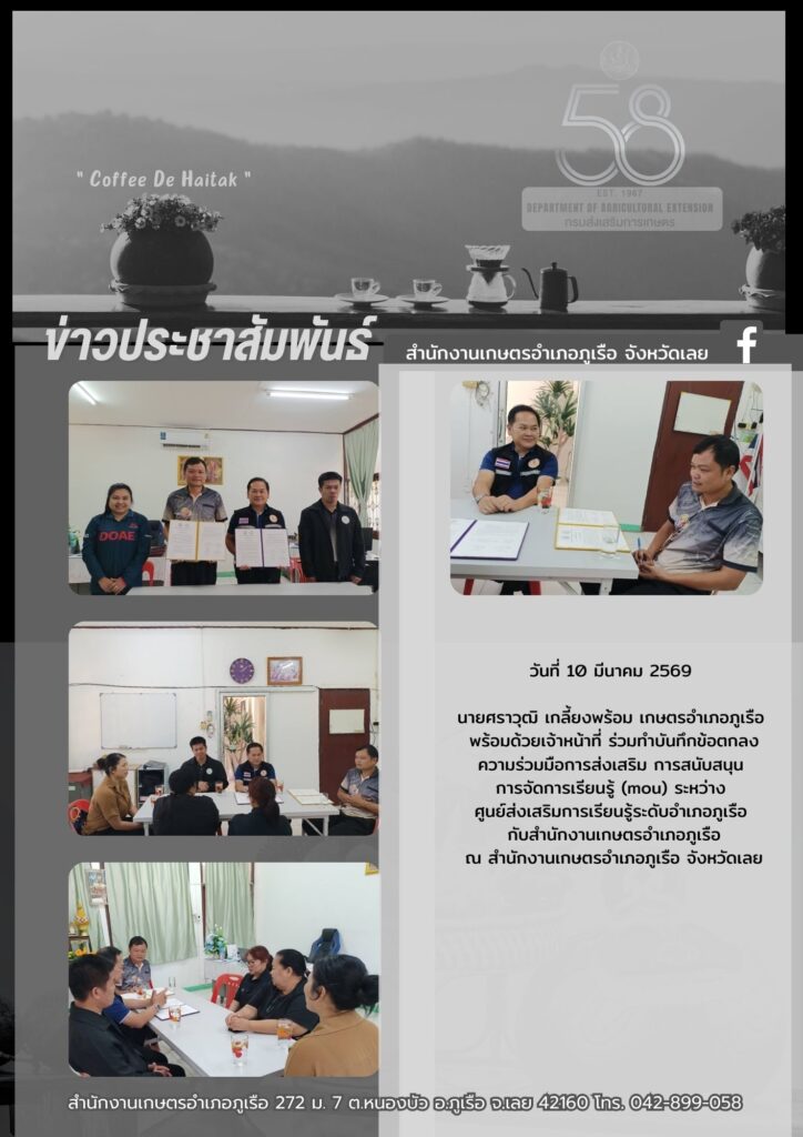 ร่วมทำบันทึกข้อตกลงความร่วมมือการส่งเสริม การสนับสนุนการจัดการเรียนรู้ (mou) ระหว่างศูนย์ส่งเสริมการเรียนรู้ระดับอำเภอภูเรือกับสำนักงานเกษตรอำเภอภูเรือBy admin_phuruea / 17 มีนาคม 2026